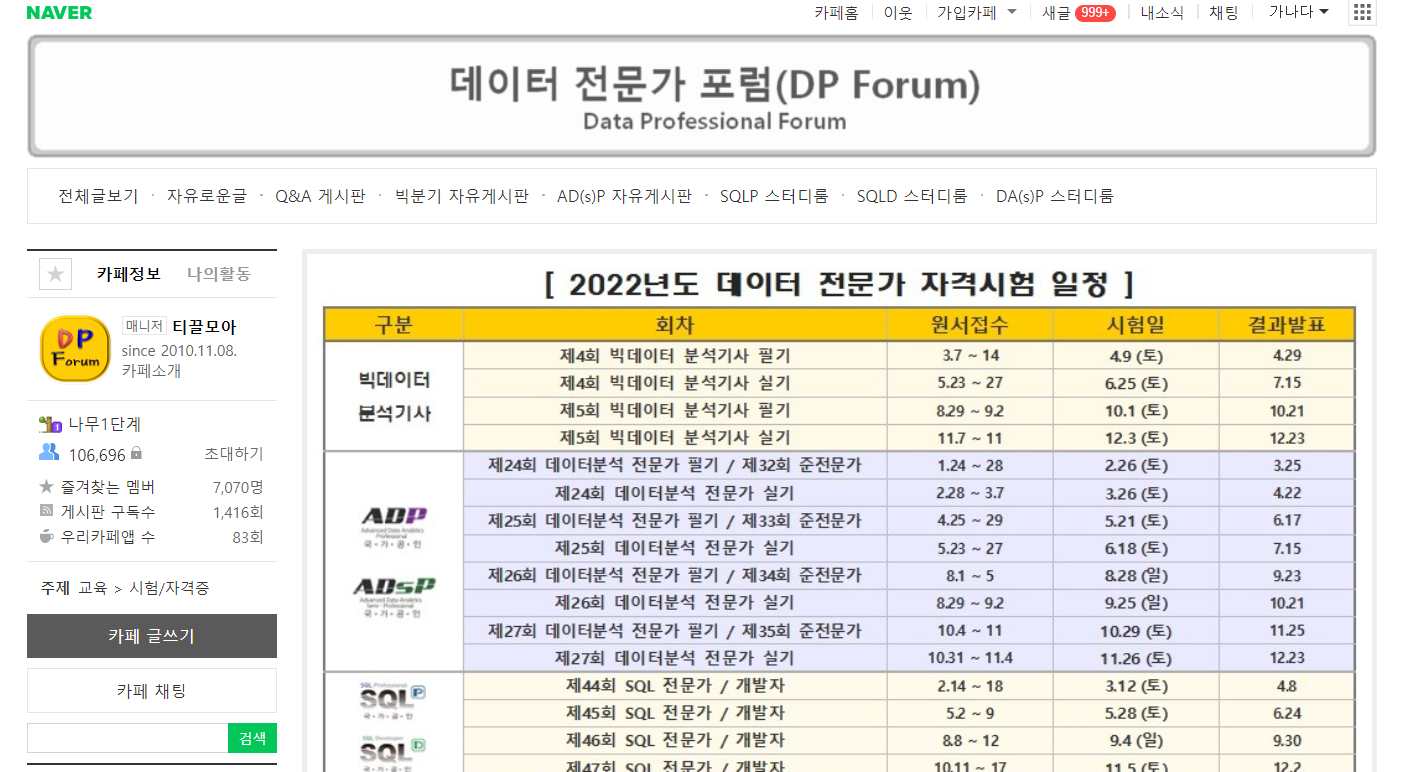 데이터 전문가 포럼 (빅데이터분석기사... : 네이버 카페